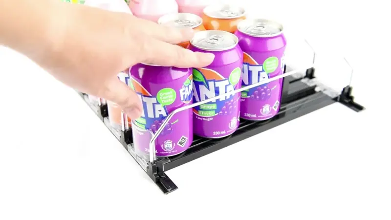 This sleek dispenser maximizes fridge space and offers refreshingly cold drinks with minimal effort. Suitable for most standard sizes cans and bottles (12oz, 16oz, 16.9oz, 20oz)
